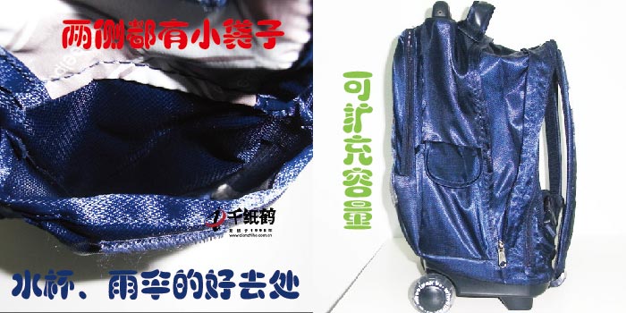 1.新颖设计,既可以背也可以拉动,可以上学当书包,也可以出差做旅行箱,书包的尺寸大小也是机场安检允许的